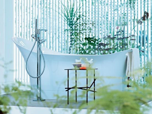Not only a natural accent, live plants clean the air and bring the outdoors inside, adding color and texture. Tropical plants thrive from the bathroom humidity and herbs provide naturally fresh scents. Your bathroom should emanate fresh, clean air, not a chemical jumble of artificial fragrances, air fresheners and cleaning products. Display small pots of lavender, rosemary, sage, or peppermint. Potted fresh herbs will not only enhance your bathroom atmosphere, they can be used for your very own custom aromatherapy bath! Pick a few stems from your favorite herb du jour, wrap them in cheesecloth and tie them to the tub faucet so the water flows through them as the tub is filled.